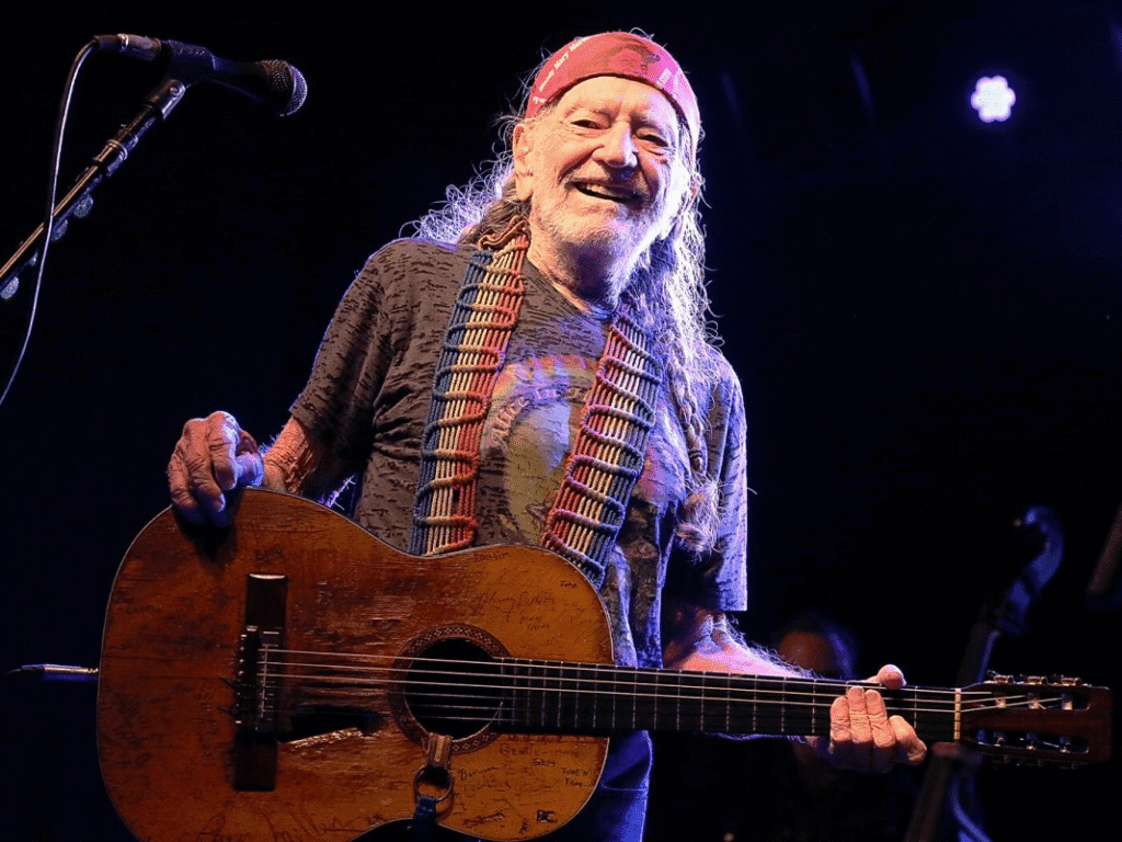 Dressed in a striped tank top and faded jeans, his signature red bandana and sunglasses perched on his head, Willie emanates the kind of effortless cool that only time, authenticity, and talent can create.