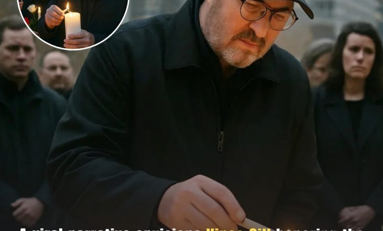 He knelt beside a wreath of white roses, lit a small candle, and set it gently at the base of the memorial wall.