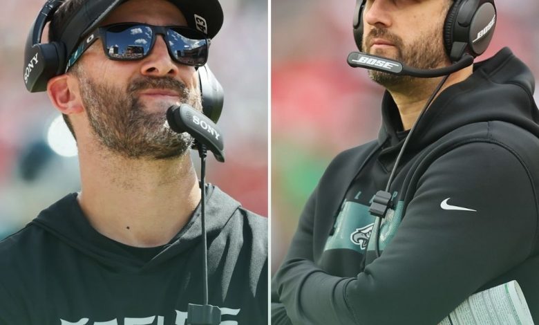 Patullo is in his first year as the team’s head offensive coordinator, following Kellen Moore’s departure to become the head coach of the New Orleans Saints. And he hasn’t won many fans inside or outside Eagles headquarters, from the drama surrounding A.J. Brown to the team’s anemic attack. Saquon Barkley, coming off one of the greatest single-seasons by a running back ever, has gone from MVP candidate to afterthought in Patullo’s offense.