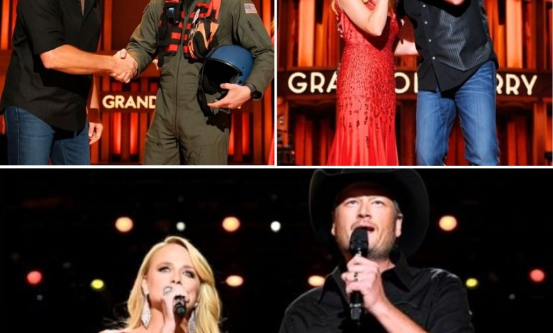 On a night that will be remembered for decades, Blake Shelton and Miranda Lambert reunited at the Grand Ole Opry — not for a chart-topping duet or a nostalgic hit, but for something far greater: a tear-stained tribute to a real-life hero who carried 165 souls to safety.