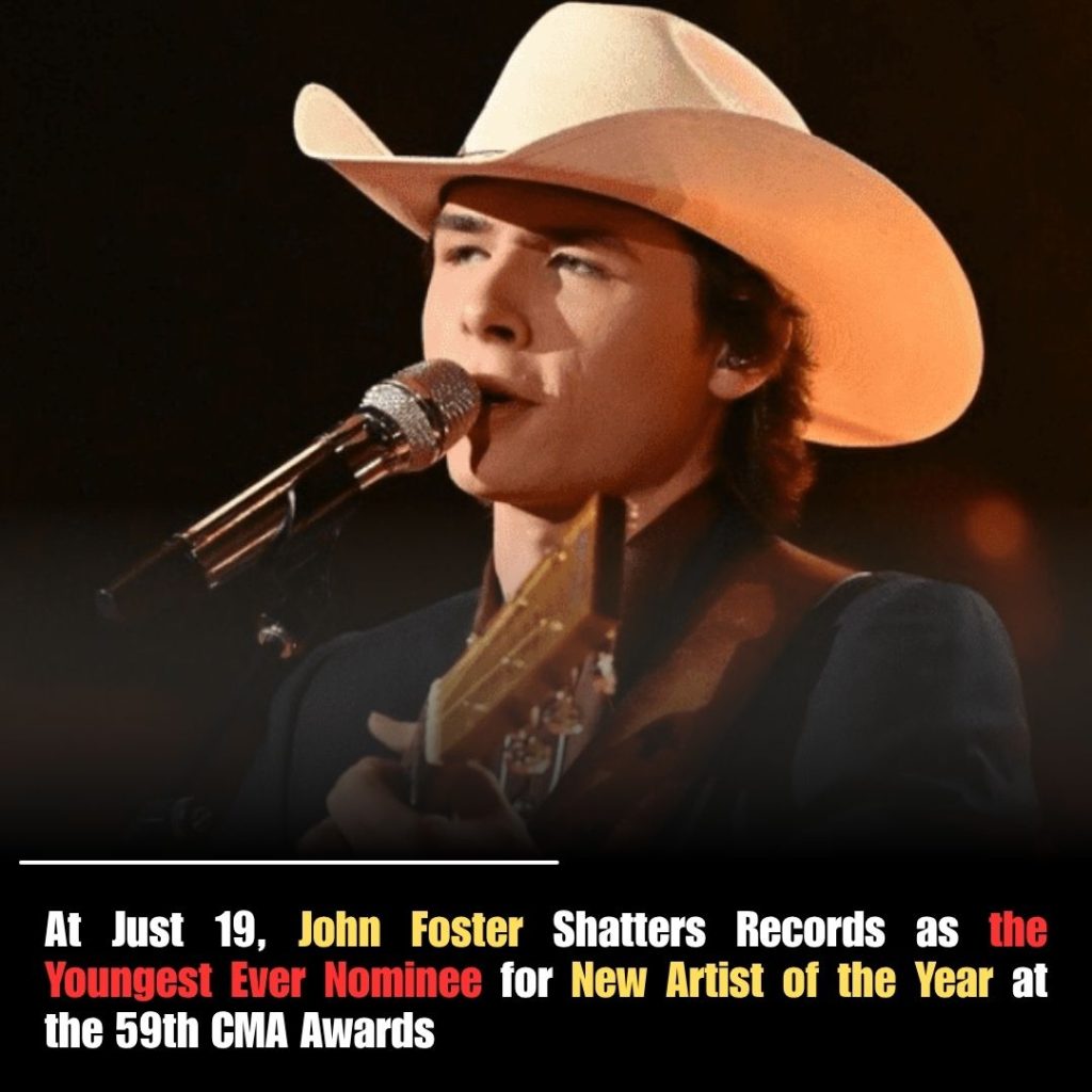 At just 19 years old, John Foster has done what even the most seasoned artists in country music often spend decades chasing: he has become the youngest nominee for New Artist of the Year at the 59th CMA Awards. The announcement, released early Tuesday morning, sent shockwaves through the industry and ignited a firestorm of celebration on social media. Fans, fellow musicians, and critics alike rushed to praise the rising star whose unmistakable voice, raw storytelling, and magnetic stage presence have already captured the hearts of millions.