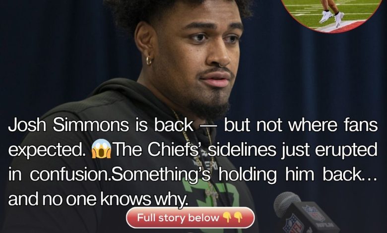 Josh Simmons is back with the Chiefs — but what’s keeping him off the field has everyone guessing.QQ