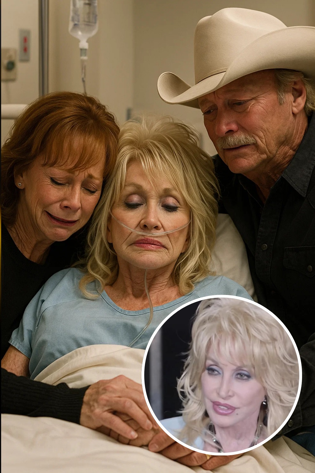 In this fictional moment, longtime friends and fellow legends Reba McEntire and Alan Jackson were said to be overcome with emotion upon hearing the news. Both are described as dropping everything and hurrying to the hospital, determined to be by Dolly’s side during the frightening ordeal.