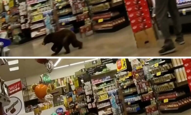 Southern Arizona grocery store erupts in disbelief after a bear wanders in and roams the aisles for minutes.NN