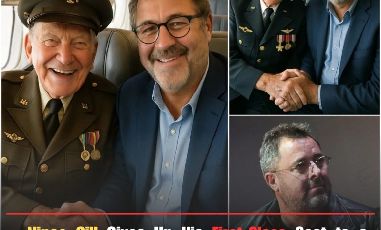 For most, noticing a veteran might spark a nod, a smile, or a polite “thank you for your service.” For Vince Gill, it sparked action. Without a moment of hesitation, he approached the man with a warm, unassuming smile. “Thank you for everything you’ve done,” Vince said, extending a hand of friendship and gratitude. Then came the surprise: “I want you to have my seat in first class. It’s the least I can do.”